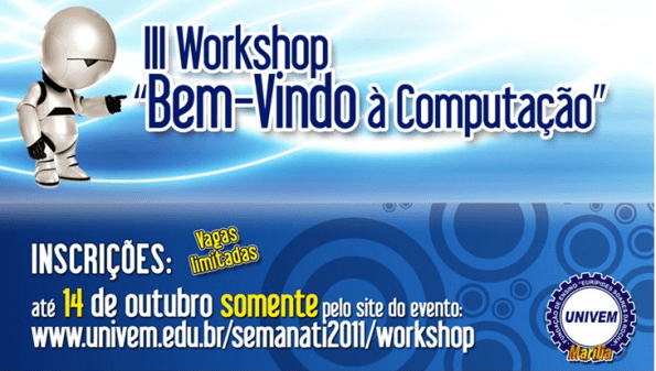 As inscrições acontecem até o dia 14 de outubro pelo site do evento: http://www.univem.edu.br/semanati2011/workshop e as vagas são limitadas.