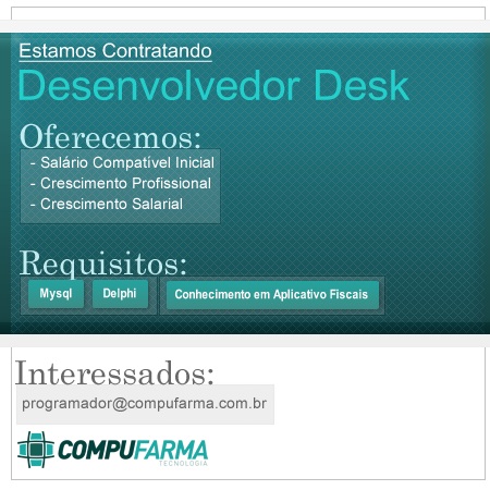 Inicial > Oportunidade Profissional > Vaga para Programador Delphi na Compufarma