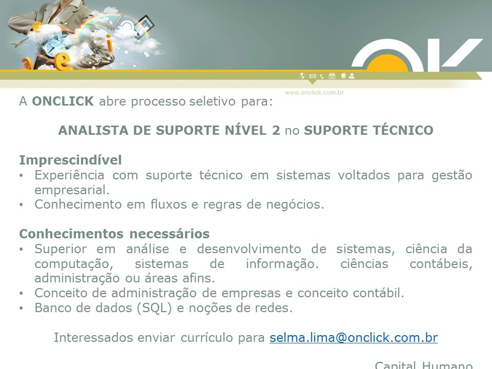 > Oportunidade Profissional > Vaga para Analista de Suporte Nível 2