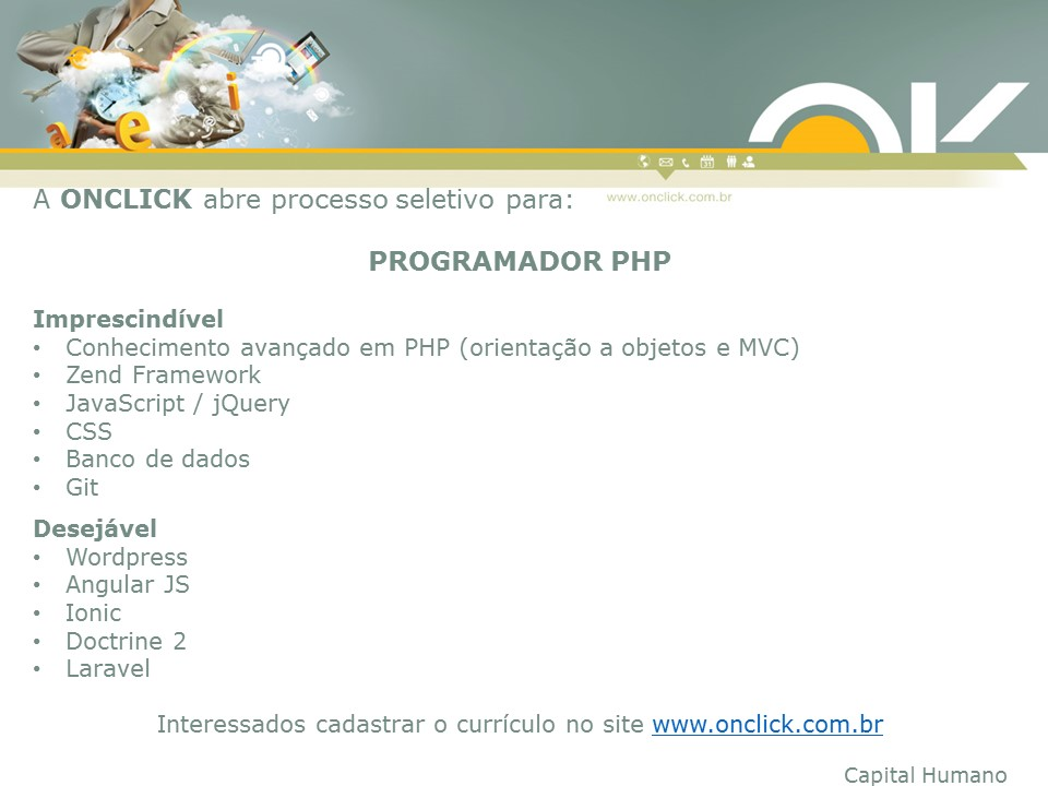 > Oportunidade Profissional > Onclick abre processo seletivo para Programador PHP