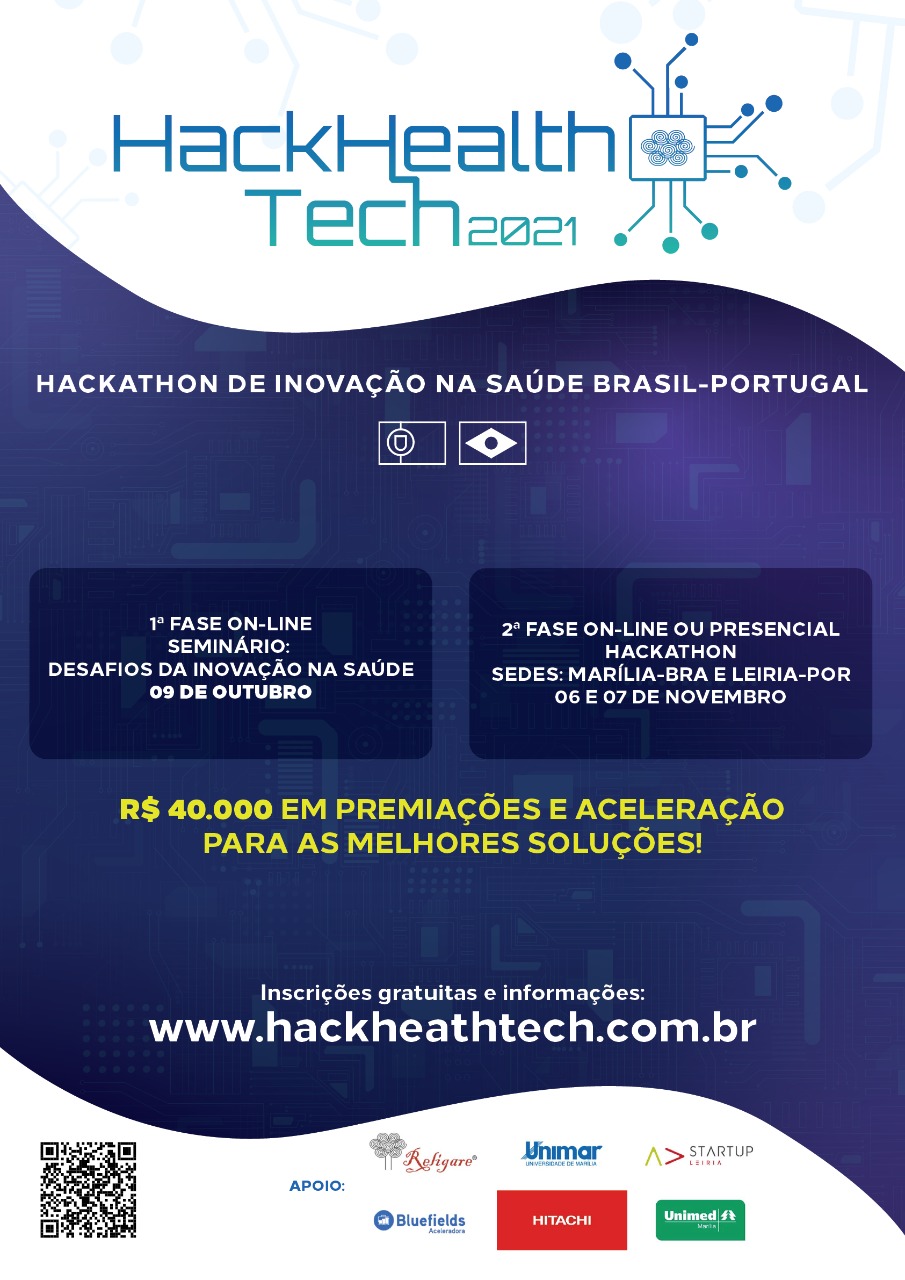 Neste contexto, buscando estimular e fomentar o desenvolvimento de inovações e startups na área da saúde no Brasil e em Portugal, acontece nos dias 07 e 08 de novembro, o HackHealthTech 2021, maior evento de âmbito internacional de inovação em saúde envolvendo instituições destes países.