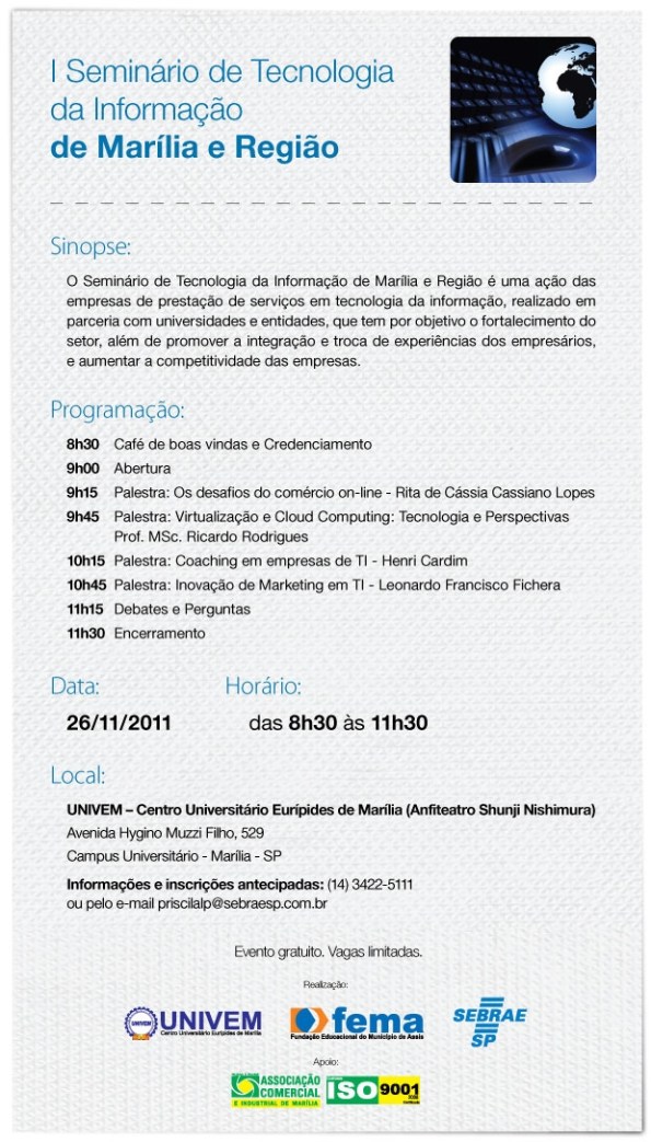 I Seminário de Tecnologia da Informação de Marília e Região – SEBRAE-SP