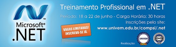 Devido à grande procura pelo Treinamento Profissional em .NET que aconteceu no Univem em junho, vamos abrir uma nova turma no período noturno de 02 a 07 de julho.