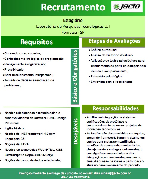 Os requisitos da vaga são: