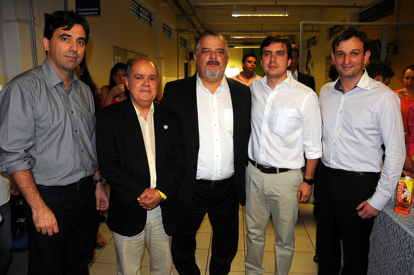 Prof. Dr. Elvis Fusco (Presidente da ASSERTI e coordenador do Univem), Dr. Luiz Carlos de Macedo Soares (Reitor do Univem), Márcio França (Vice-Governador e Secretário de Desenvolvimento Econômico, Ciência, Tecnologia e Inovação), Vinícius Almeida Camarinha (Prefeito de Marília) e Prof. Dr. Fábio Dacêncio Pereira (Professor e Coordenador de Pesquisa e Extensão do Univem)