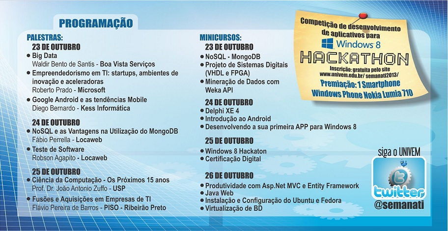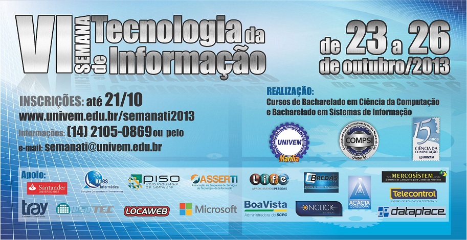 Para fazer sua inscrição e ver a programação completa do evento, acesse http://www.univem.edu.br/semanati2013.