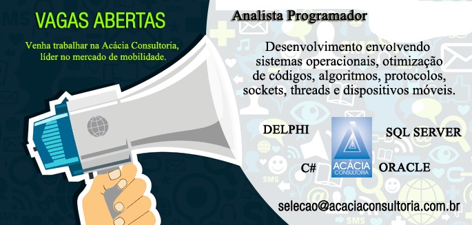 - 2 vagas para programador Delphi com experiencia de 6 a 12 meses;